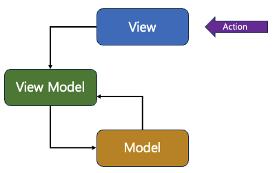 - View에 입력(Action)이 들어오면, 미리 정의된 Command 패턴으로 View Model에 입력(Action)을 전달합니다.