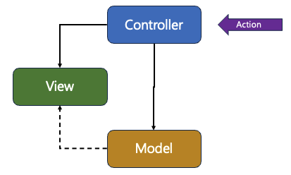 - Controller는 사용자의 입력(Action)을 확인하고, Model 데이터를 변경합니다.