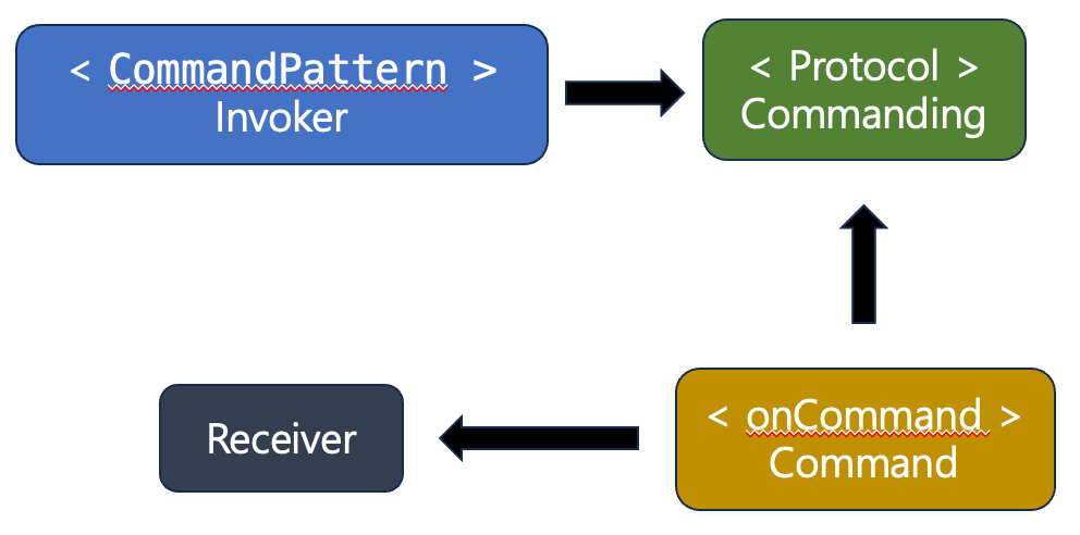 커맨드 객체를 직접 소유하지 않고, 앞어 정리했던대로 인터페이스(프로토콜)을 소유하게 됩니다.