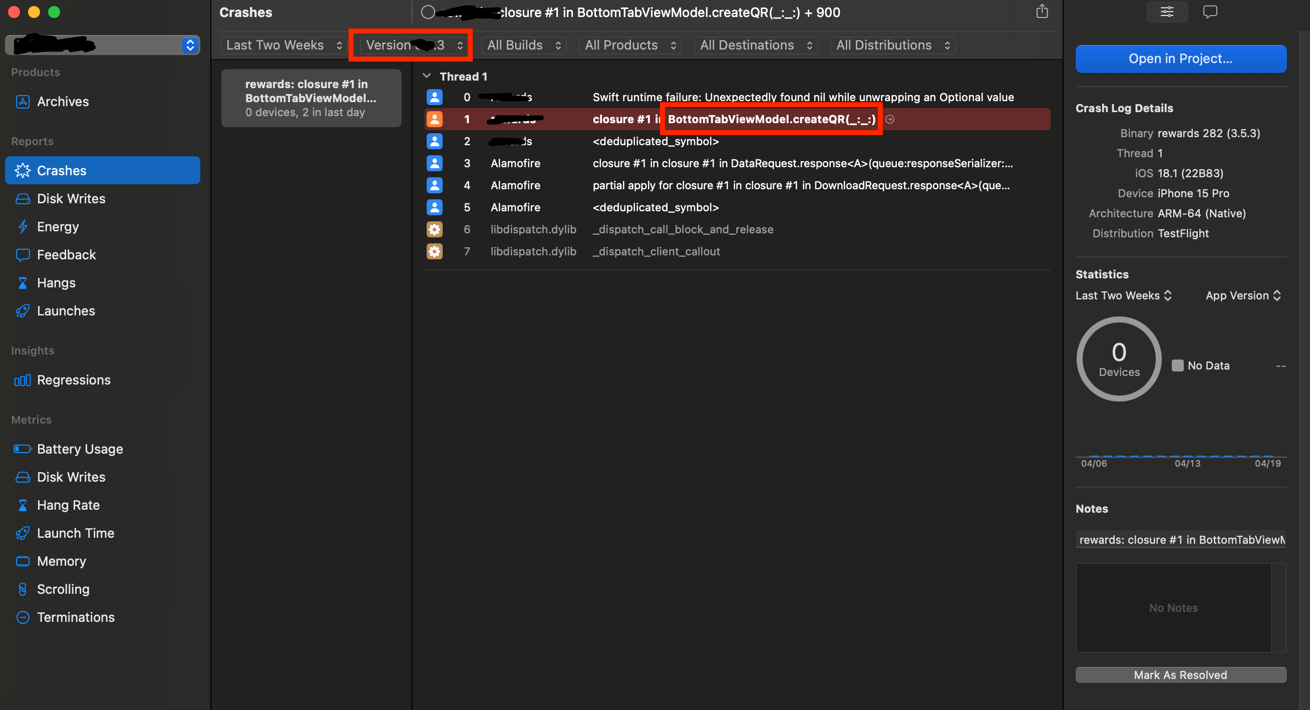 오늘은! 간단하게 TestFlight에 올린 앱이 크래시가 났을 경우!
